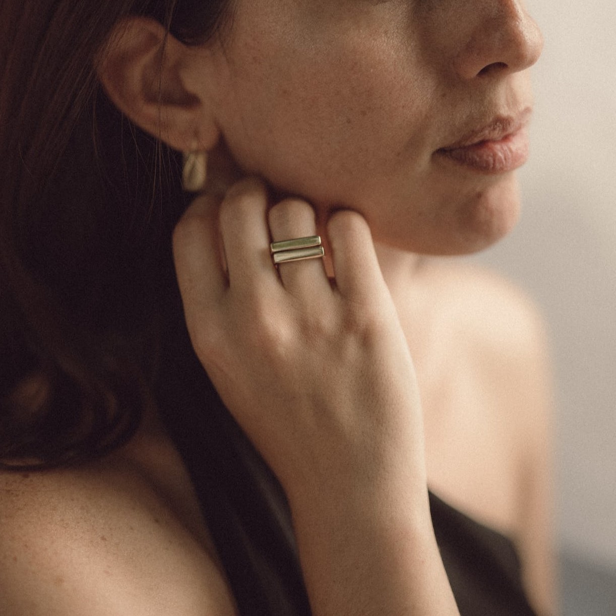 Clean lines and geometric shapes inspired by architectural structures. Metalwork resembling the precision of architectural details, paired with bold gemstone accents for a modern touch.
